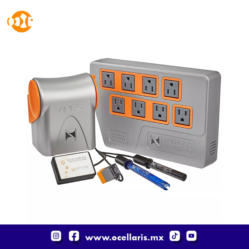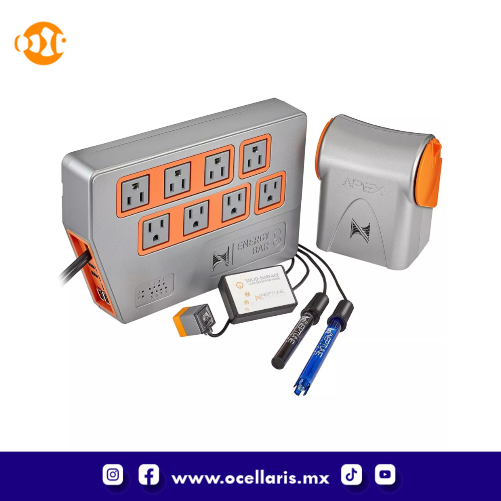 Incluido con el sistema de control de Apex está el Energy Bar 832, el centro de control de energía para gobernarlos a todos. Son las únicas barras de energía certificadas por UL aprobadas para su uso en aplicaciones de acuarios. Cada uno de los ocho tomacorrientes individuales tiene monitoreo de consumo de energía independiente con su propia pantalla de estado de indicador LED, y la fuente de alimentación alimenta tres puertos 1LINK incorporados adicionales, así como dos puertos de accesorios de 24 V CC. Ahora puede conectar accesorios adicionales de Neptune como la bomba DOS y WAV directamente a la barra de energía 832, ahorrando espacio y eliminando los cables desordenados alrededor de su acuario.