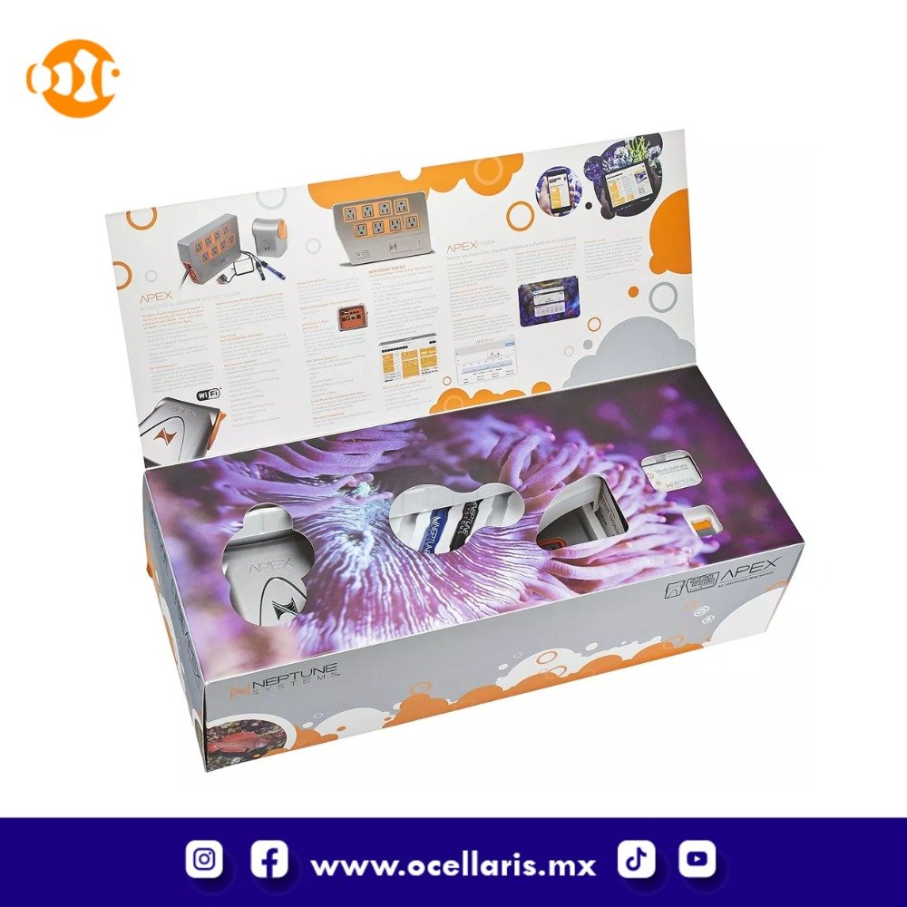 WiFi incorporado, monitoreo de parámetros clave y control confiable de equipos. Prevenga catástrofes, tome medidas correctivas y reciba alertas en su teléfono inteligente cuando las cosas salgan mal. Configure recordatorios, registre pruebas e información de dosificación, y controle su acuario desde cualquier parte del mundo. ¡Todo esto y más es posible con el sistema de control Neptune Apex!