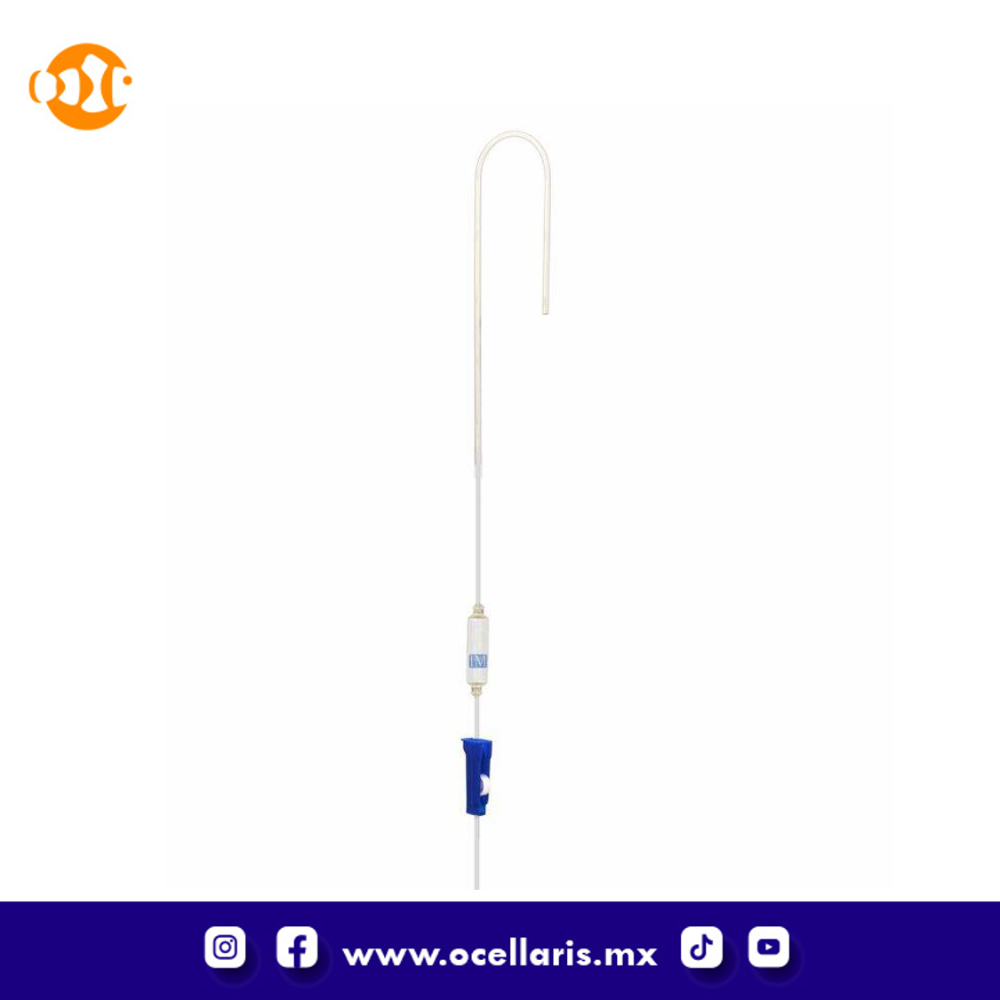 - Cuelgue el tubo rígido en el borde del acuario y coloque el otro extremo en el balde