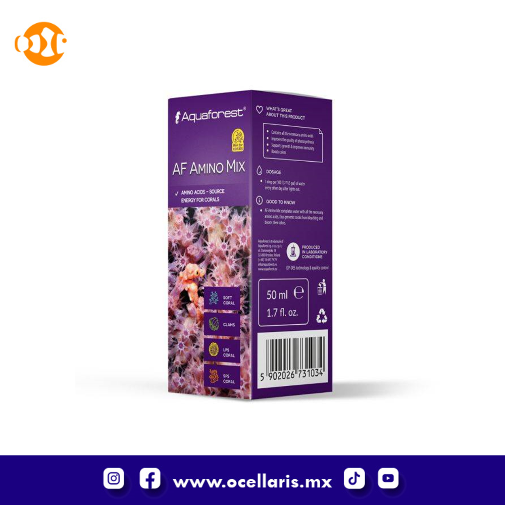 AF Amino Mix completa el agua con todos los aminoácidos necesarios, por lo que evita la decoloración de los corales y potencia su color. La composición única de AF Amino Mix se basa, entre otros, en biotina, alanina, glutamina, leucina, lisina y serina. El conjunto de aminoácidos cuidadosamente seleccionados aumenta la cantidad de zooxantelas que apoyan la producción de pigmentos fotosintéticos como la clorofila. Por lo tanto, Amino Mix no solo potencia la coloración, sino que también mejora la calidad de la fotosíntesis. Como resultado, los corales obtienen más energía de la luz, se mantienen en perfectas condiciones y crecen más rápido. El uso regular de AF Amino Mix mejora la inmunidad y acelera notablemente el crecimiento de los corales.