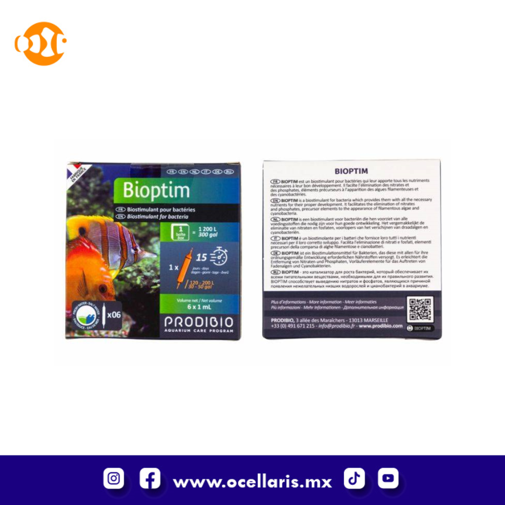 Prodibio Bioptim es un aditivo especializado diseñado para mejorar la salud y la eficiencia de las bacterias en los acuarios. Actúa como un suplemento para las bacterias BioDigest, acelerando su tasa de crecimiento.