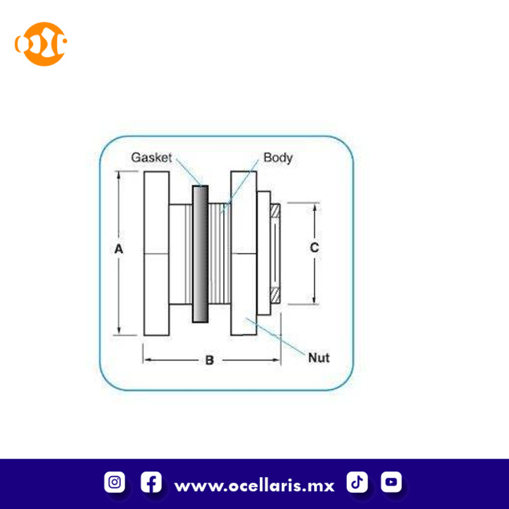 Al medir bulkhead, necesitará un orificio en su tanque que sea un poco más grande que la medida "C" para el mamparo correspondiente, pero no más grande que la medida "A". (ver imagen)