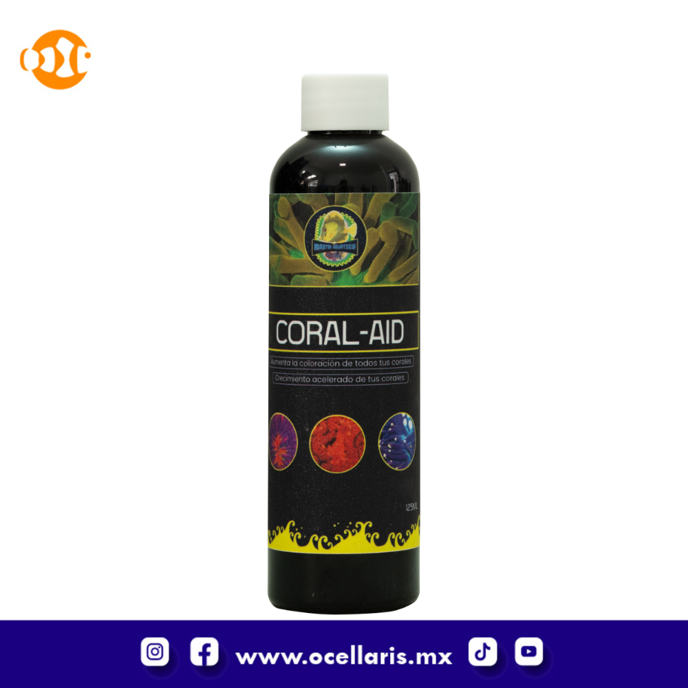CORAL AID Es una mezcla completa de 17 aminoácidos concentrados. Estos aminoácidos ayudarán a tus corales en cuanto a la vitalidad, coloración y crecimiento. Ayuda por igual a corales SPS, LPS y blandos. Se pueden agregar el tanque directo o con dosificadora. No necesita refrigeración.