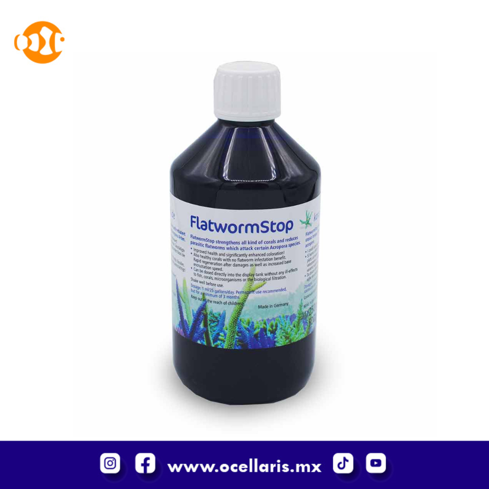 Korallen-Zucht Flatworm Stop ayudará a reducir los gusanos planos parásitos en los corales Acropora y SPS, al tiempo que fortalece todos los demás tipos de corales.