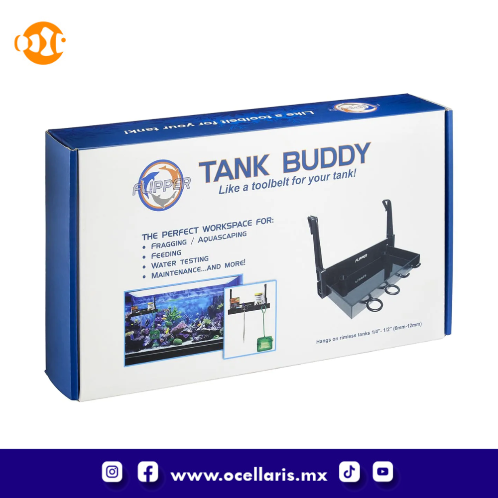 Colgado 15 cm por debajo del borde de su acuario sin borde, está diseñado para facilitar el acceso sin necesidad de forzar la mano. Compatible con acuarios sin borde de entre 6 mm y 12 mm de grosor, el Tank Buddy es imprescindible para cualquier acuarista que busque optimizar su flujo de trabajo.