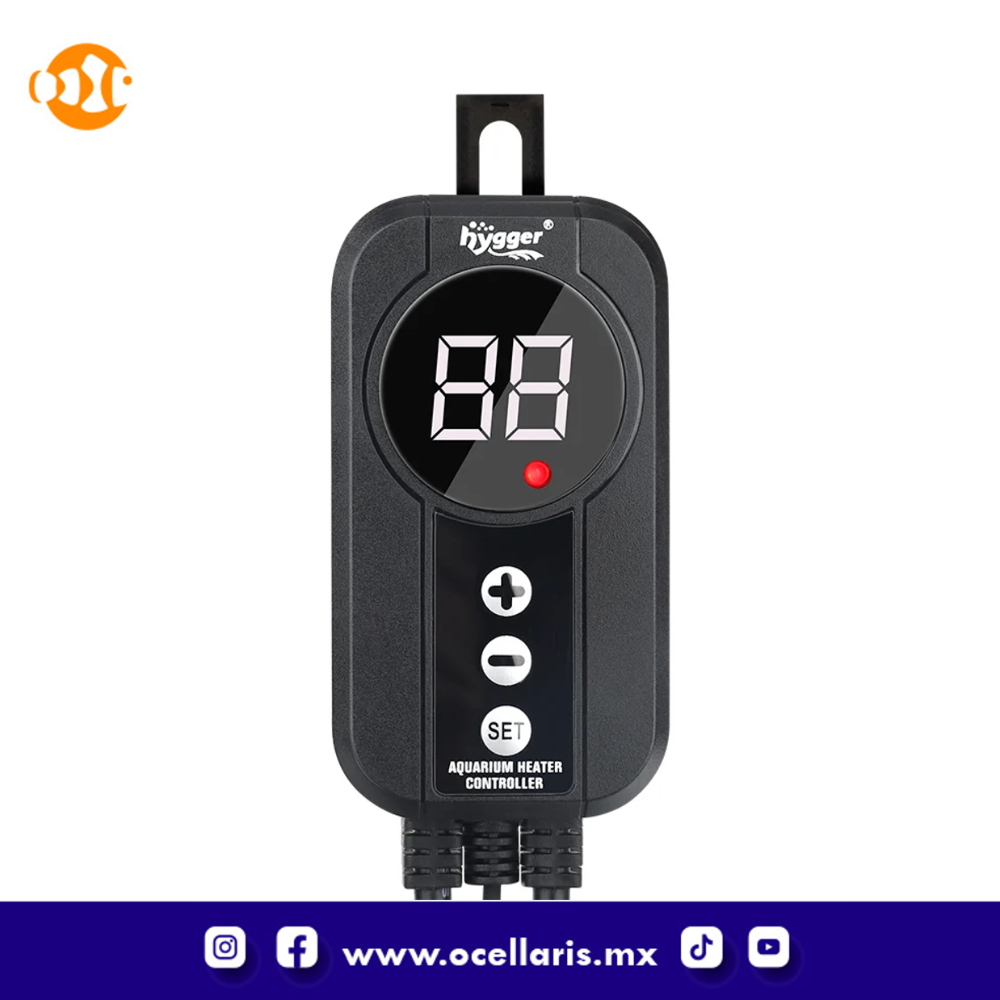 El calentador de titanio Hygger 085 de 200 W es apto para acuarios de agua salada y dulce de entre 115 a 150 litros (30 a 40 galones). Está fabricado con aleación de titanio aeroespacial TA2 y su tubo está recubierto de teflón. Incorpora un chip IC inteligente, un sistema de control de temperatura preciso y función de memoria. Un controlador externo muestra y ajusta la temperatura del agua.