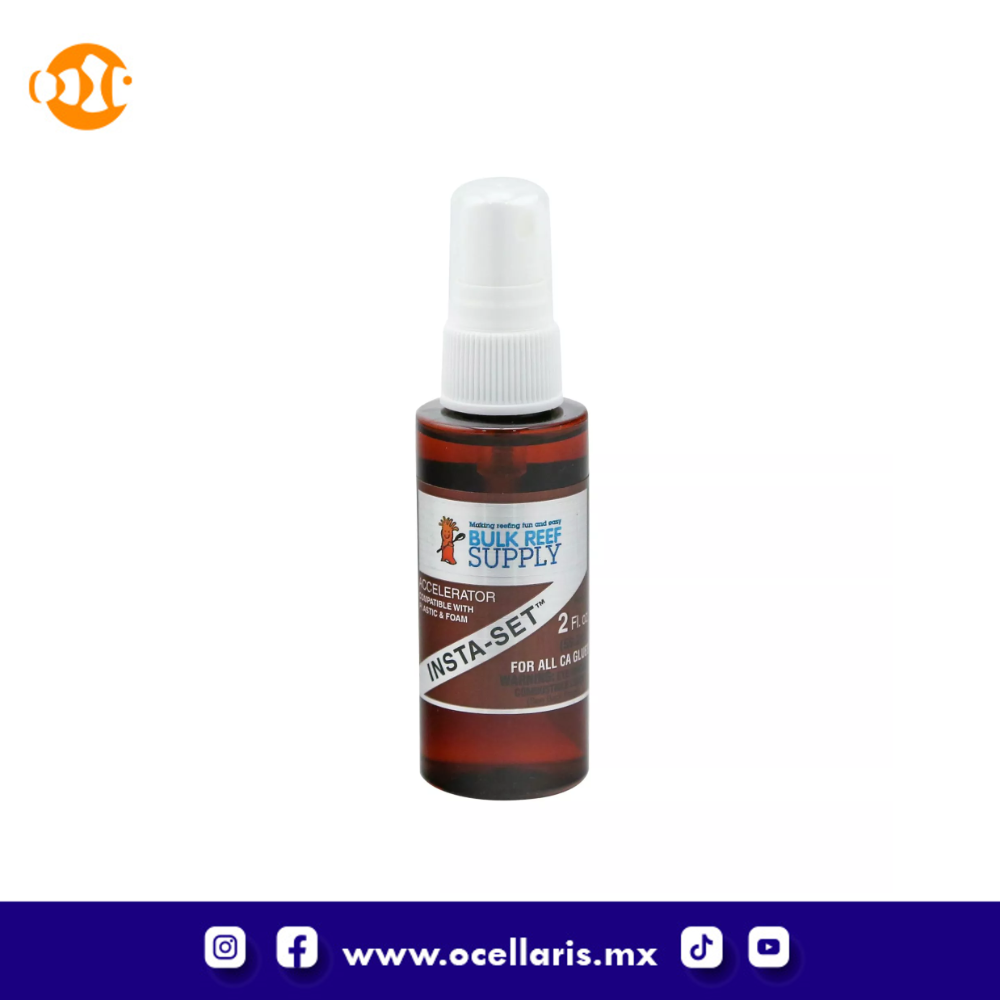 El acelerador Insta-set ayudará a acelerar el tiempo de fraguado de cualquier superpegamento de cianoacrilato. Lo más frustrante de fragmentar coral es el tiempo que hay que esperar a que el pegamento se asiente, o el fragmento puede simplemente caerse y mancharse de pegamento. Con el acelerador, ese tiempo de espera se reducirá significativamente, dejando más tiempo para pegar más fragmentos y disfrutar de su tanque. Insta-set no es como otros aceleradores que huelen horrible y tienen un olor químico muy fuerte. Se ha puesto un aroma a fresa en su acelerador para que su uso sea agradable.