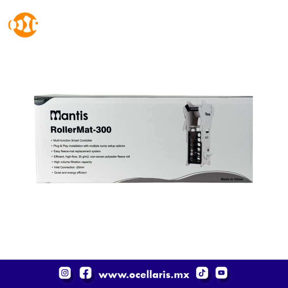 El sistema de filtro automático Mantis RollerMat-300 está especialmente desarrollado principalmente para su uso en acuarios marinos para reemplazar el uso de calcetines filtrantes.