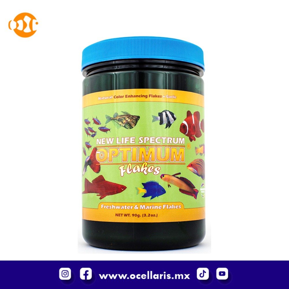 New Life Spectrum® Optimum Flakes utiliza la fórmula Spectrum Nutrition. Son adecuados para peces comunitarios más pequeños que se alimentan en la superficie. Si bien los gránulos brindan una mayor densidad de nutrientes y estabilidad en el agua, esta es una excelente solución para aquellos peces condicionados a las hojuelas o como una transición de los alimentos en hojuela a los gránulos New Life Spectrum.