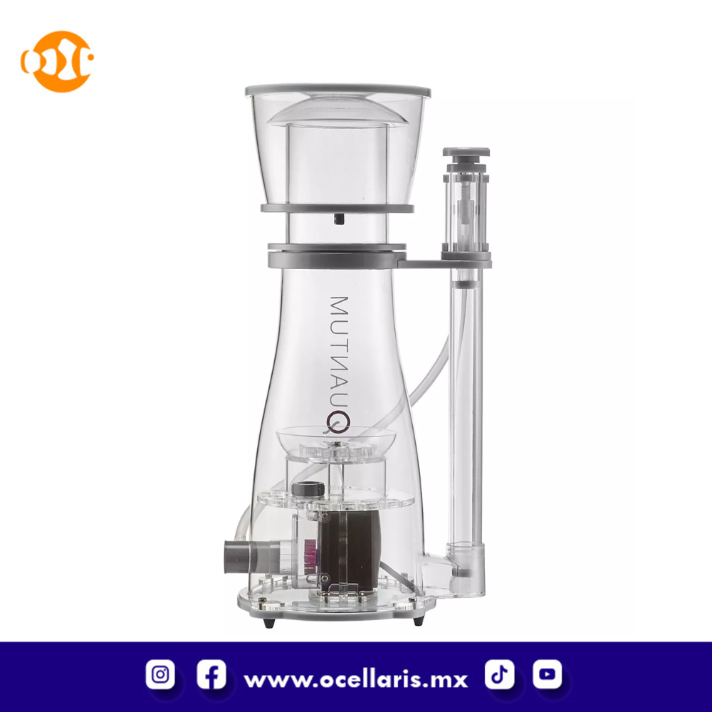 Cuando se trata de skimmers de proteínas, la línea Nyos Quantum no solo es elegante, sino que simplemente funciona muy bien. Cada skimmer incluye una rueda híbrida que produce microburbujas extremadamente finas y está fabricada con materiales superligeros que reducen la masa giratoria manteniendo la eficiencia energética de la bomba. La rueda híbrida está alojada en el área de la bomba denominada Clear-View Reactor de Nyos que le permite ver las burbujas que se crean en la fuente, al mismo tiempo que le permite identificar cualquier objeto extraño que pueda haber entrado en la zona de la bomba.
