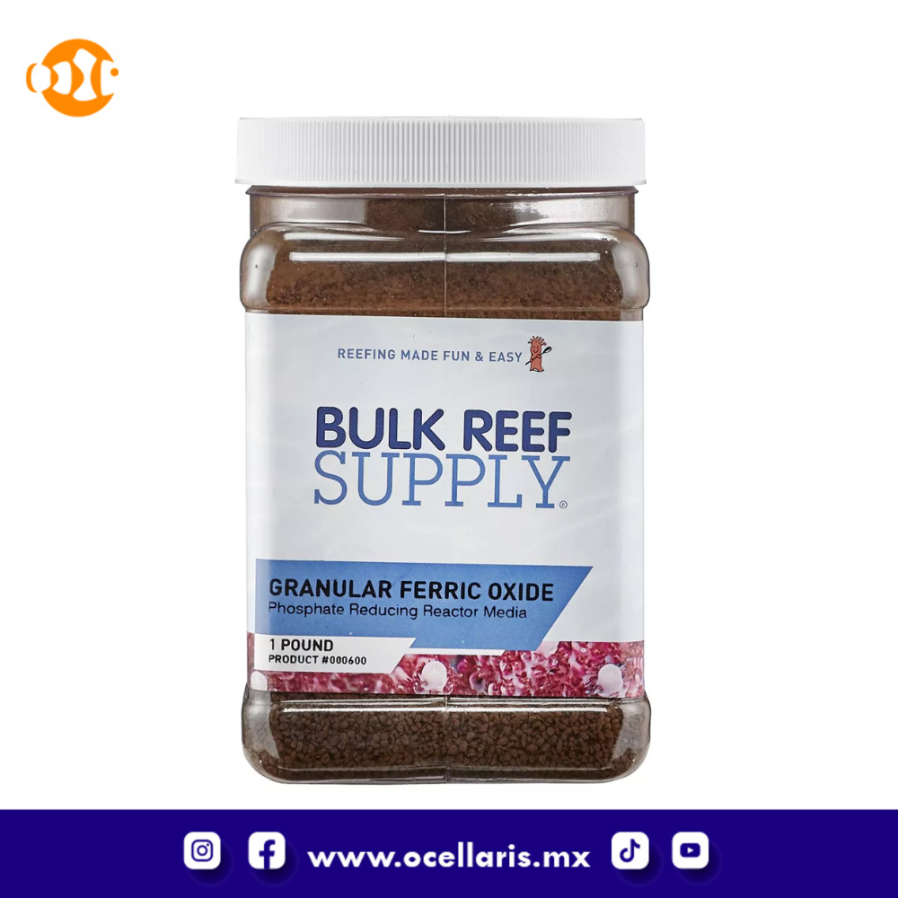El óxido férrico granular (GFO) elimina el fosfato del acuario y es uno de los medios de filtración más utilizados en la industria de los acuarios. GFO es una de las pocas formas de mantener fácilmente el fosfato ultra bajo de manera constante. Mantener estos niveles ultra bajos ayudará a prevenir brotes de algas, así como a tratar los problemas de algas existentes. El vidrio de su acuario también se mantendrá transparente y libre del tono verde durante mucho más tiempo. GFO se usa más comúnmente en un reactor de medios como el reactor BRS o la bolsa de medios.