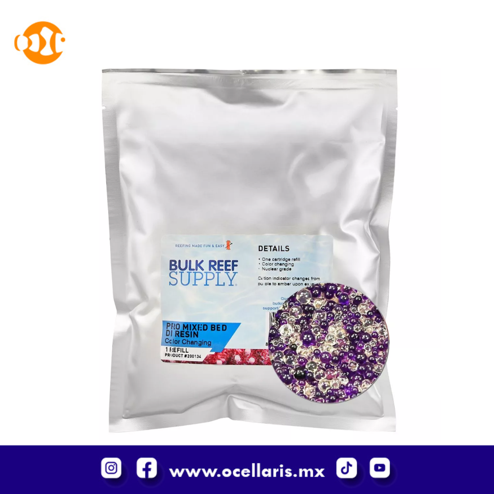 Los sistemas de ósmosis inversa pueden eliminar hasta el 99% de los contaminantes de su agua, sin embargo, nunca pueden eliminar el 100%, que es el objetivo general para el agua del tanque de arrecife. Ahí es donde entra en juego la resina de desionización (DI), al tener lugar como el último "filtro" de un sistema RODI después de la membrana. La resina DI se carga iónicamente como un catión (+) o anión (-) para intercambiar moléculas de hidrógeno o hidróxido por contaminantes como fosfato, sílice, nitrato, sulfato, aluminio, hierro, calcio, etc., lo que le permite lograr 0 TDS de agua para su acuario y ayudar a eliminar cualquier posible problema de calidad del agua. Puede o no saber que hay varios tipos de resina DI disponibles, desde resinas de lecho mixto hasta resinas de lecho simple que puede usar dependiendo de cuál sea el objetivo específico para su agua y qué hay en el agua después de la membrana de RO.