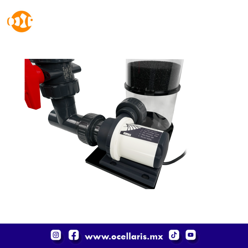Incorpora una bomba DC Mantis 4000 de velocidad variable para recirculación y mezcla del agua de su tanque con el CO2 y la media en la cámara del reactor.