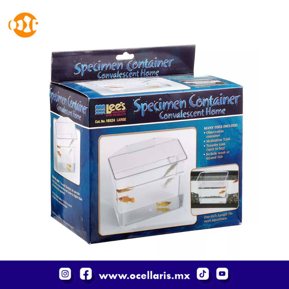 El contenedor de muestras de Lee tiene una amplia variedad de usos y los usamos todo el tiempo. El colgador integrado permite que el contenedor cuelgue en el borde de su tanque (hasta 1 "de grosor) y se puede colocar para colgarlo fuera o dentro del acuario. El contenedor de muestras de Lee es un excelente dispositivo de aclimatación, lo que le permite observar su nueva llegada. , pero también es perfecto para inmersiones en corales o peces.El pequeño volumen significa que se necesita menos medicación para establecer una dosis efectiva.