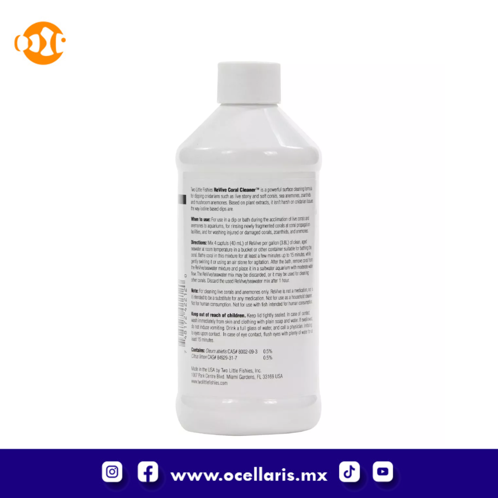 Sólo para la limpieza de corales vivos. ReVive no es un medicamento, ni pretende ser un sustituto de ningún medicamento. No debe utilizarse como limpiador doméstico. No es para consumo humano.