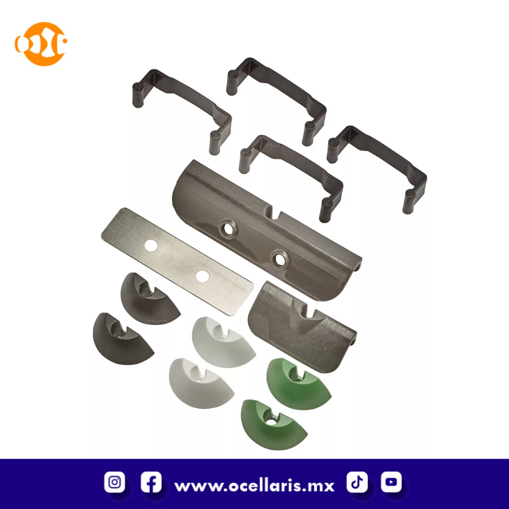 8 caperuzas terminales de color (azul, verde, blanco, negro).