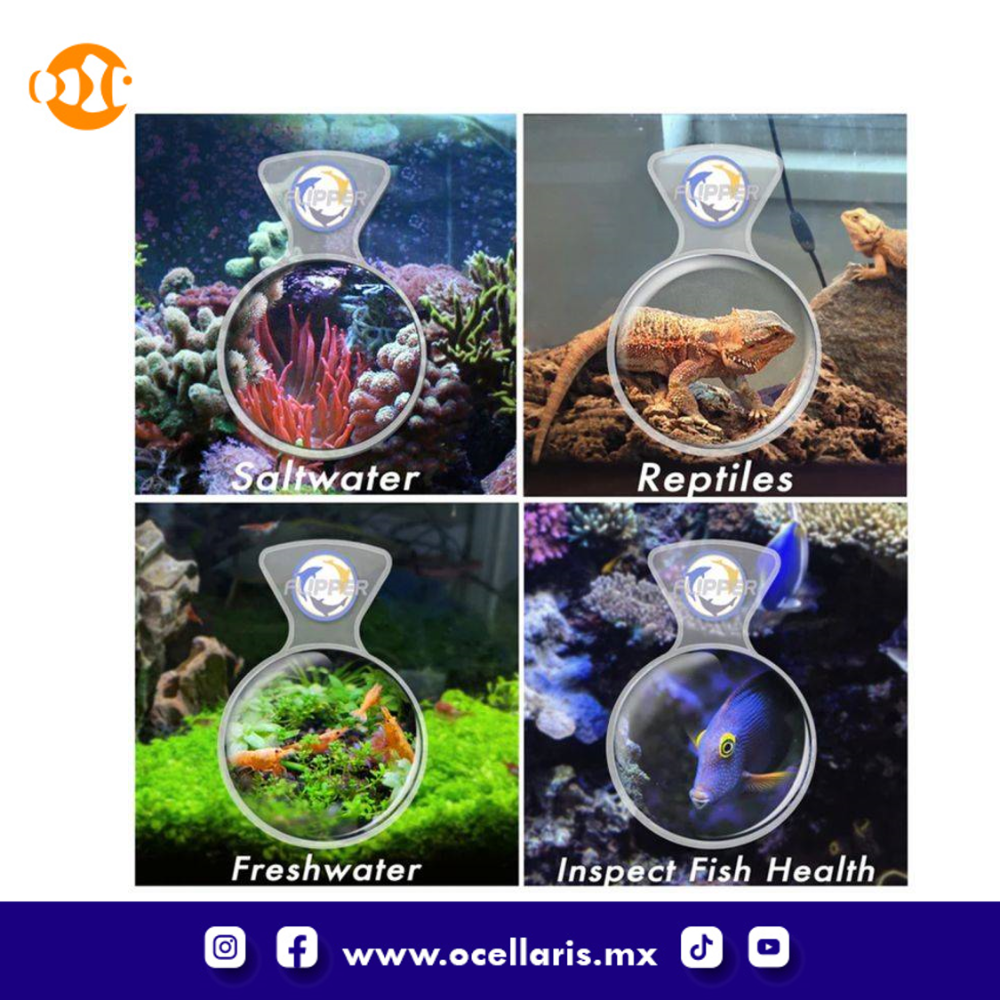 Mejora tu experiencia en acuario con el visor ampliado Flipper DeepSee Clear de 4". Esta lupa de grado óptico de alta calidad proporciona un portal de visualización de 4 pulgadas, perfecto para capturar impresionantes fotografías de acuarios. Con un rango focal de aproximadamente 3 a 8 pulgadas, le permite examinar cada detalle con una precisión cristalina.