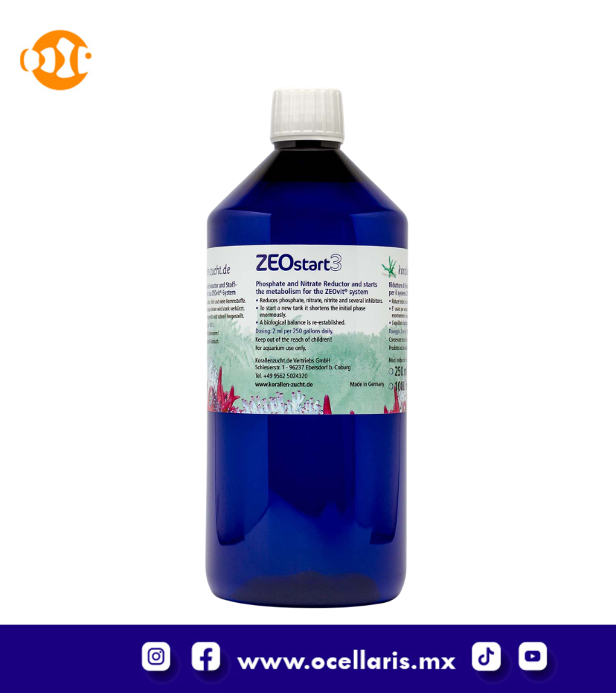 ZEOstart es una fuente alimenticia de carbono que favorece la reproducción de bacterias beneficiosas para el sistema ZEOvit. Las bacterias ayudarán a mantener niveles ultrabajos de fosfato y nitrato. ZEOstart es uno de los cuatro grandes (ZEOvit, ZEObak,ZEOfood, ZEOstart) requerido para el sistema estándar de nutrientes ultrabajos de ZEOvit. Este sistema está diseñado para mantener la máxima coloración, crecimiento y salud del coral.